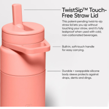 With a combination of our revolutionary TwistSip™ Technology and the first integrated stainless steel straw system, the leakproof Rotera twist-to-sip water bottle represents the best of modern design and sustainability. The 35oz size keeps you hydrated throughout the day with limited refills, and all without having to touch the straw or worry about spills.