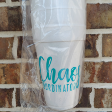 Fun sayings on these 16oz styrofoam cups. Have them for a party or for just hanging out and you need a quick and easy clean up. Gr eat for keeping drinks cold without the cup sweat. 25 cups.