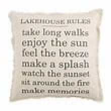 Decorate your favorite R&R spot with this adorable lake rules pillow. This large pillow will add that lake feeling to any decor. Washed canvas pillow features all the rules you need at the lake! Pillow has a fringe trim and zipper closure.