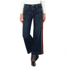 A statement in every stride. Vintage-inspired with a modern edge, this wide-leg silhouette is finished with rich velvet trim down the sides for a touch of unexpected luxe. Cut from soft crosshatch denim in Eastmoor, it delivers structure and drape in equal measure. Pair it with a sleek knit or blazer—this is denim with a dressed-up twist.